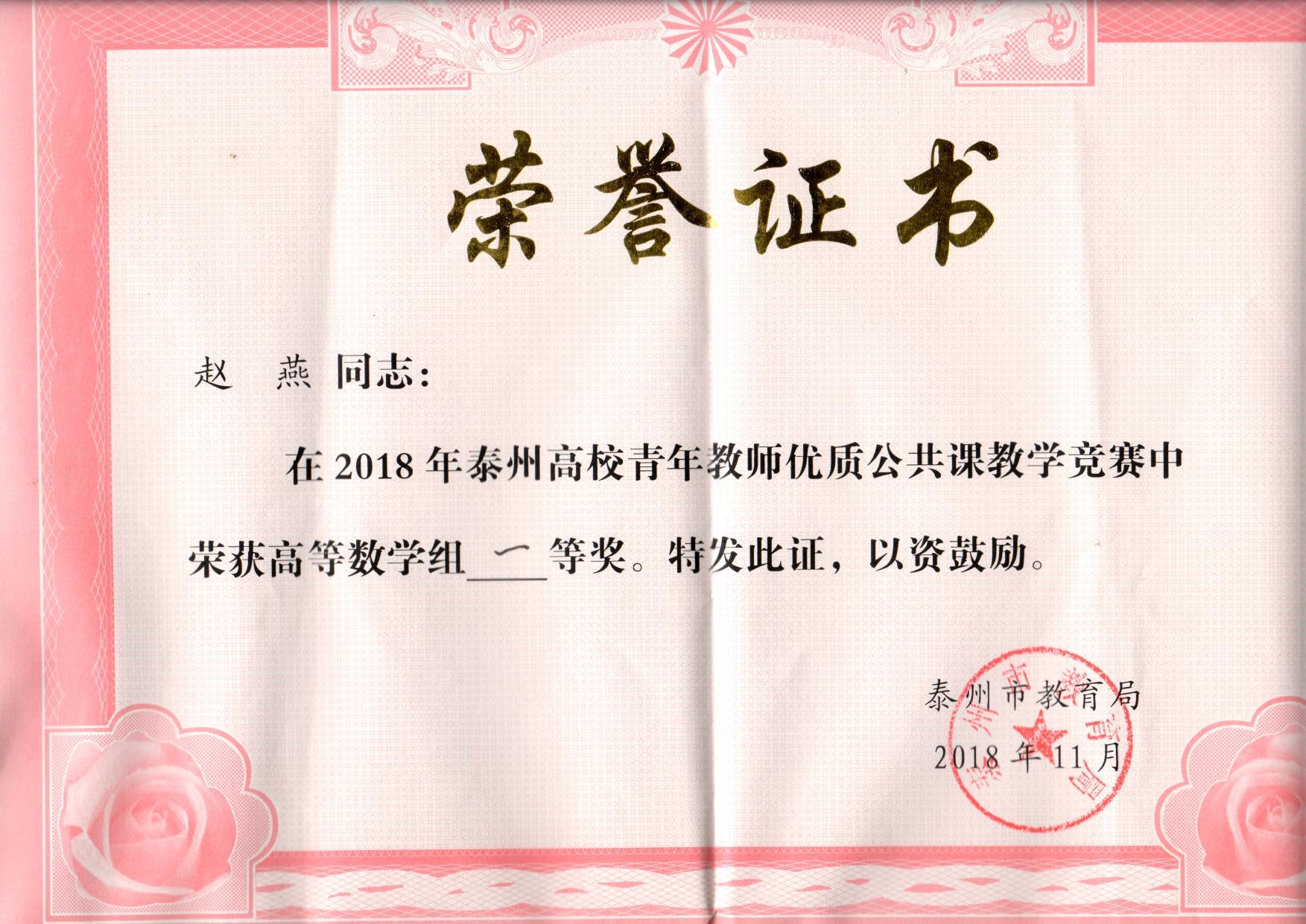 喜报:公司赵燕老师在2018年泰州高校青年教师优质公共课教学竞赛中获一等奖