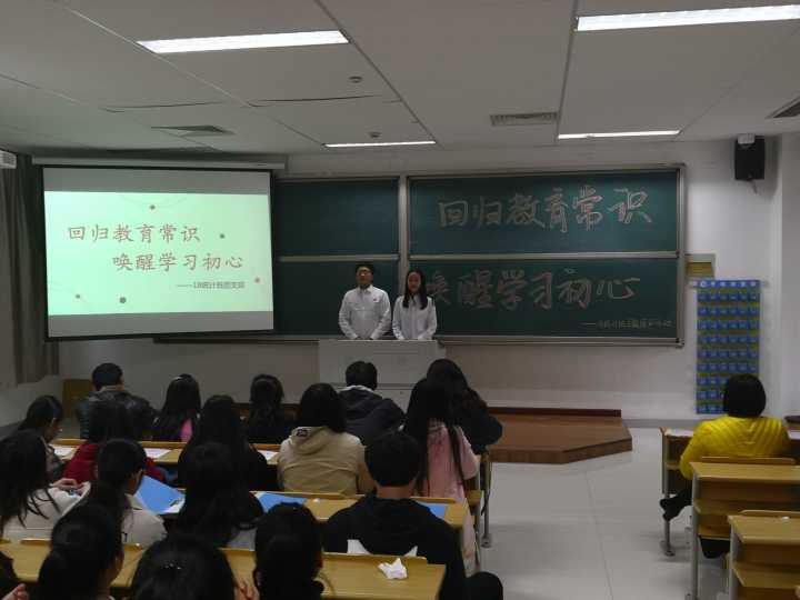 11月30日下午4点,公司18应用统计班全体同学在教学楼1308举办了一场校级主题团日活动——“回归教育本质,唤醒学习初心”。