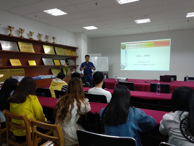 徐大川教授的报告题目是《k-平均及其变形问题的算法综述》,他深入浅出地讲解了k-平均问题及其诸多变形及推广问题的几种经典算法,说明了k-平均聚类是一种聚类分析方法,如何在数据挖掘领域得到广泛应用。张晓岩教授的报告题目是《离散优化与人工智能》,他从P与NP问题说起,结合美国电影《蚁人》和芯片设计中物理布线的原理,生动细致地说明了离散优化的重要性,同时就当下比较热门的人工智能的数学本质和发展方向,提出了自己的看法。