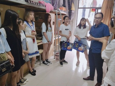 在中秋节来临之际,Bevictor伟德官网开展对贫困员工的慰问活动。公司党委副书记吴小荣老师和辅导员庞静老师、王彧老师来到员工宿舍,给中秋放假未回家的外省同学送上了中秋节礼物。