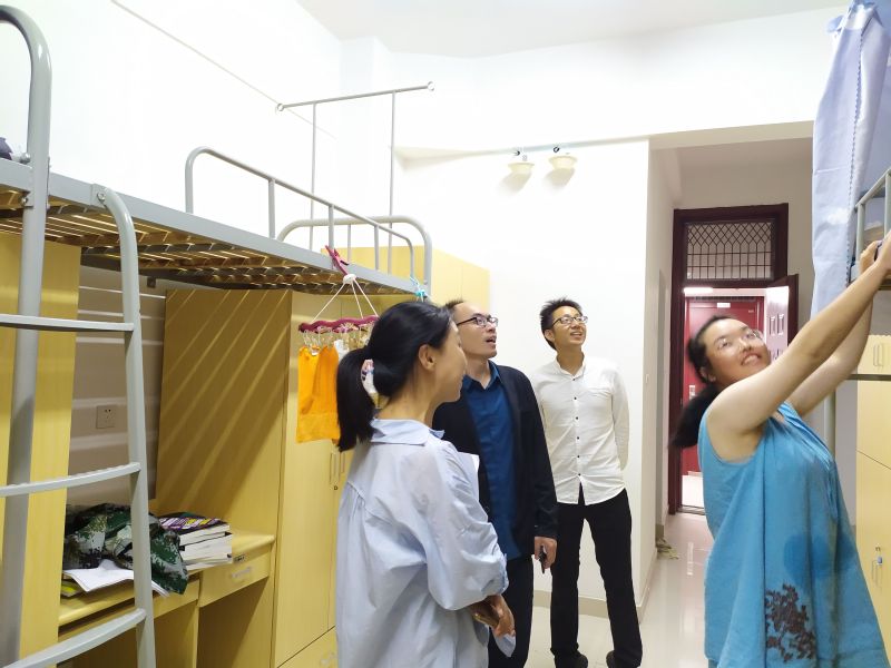 为加强员工宿舍管理,规范员工行为,营造健康、整洁、安全、舒适的生活环境,9月28日晚,公司吴小荣书记带领辅导员庞静、王彧老师对全院员工宿舍进行了安全检查。
