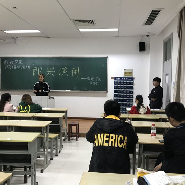 作为未来教师,口才、板书与临场发挥能力必不可少。本次比赛设置硬笔书法、即兴演讲、说课三个环节。比赛中,参赛选手各展才华,从黑板上赏心悦目的板书,到讲台上铿锵有力的演讲,再到引人入胜的说课,无一不体现出参赛选手们身为未来教育工作者的优秀基本能力与素养。参赛选手的精彩表现得到了评委们的赞赏。最终,在评委评审下,本次比赛硬笔书法、即兴演讲、说课分别产生了一、二、三等奖。