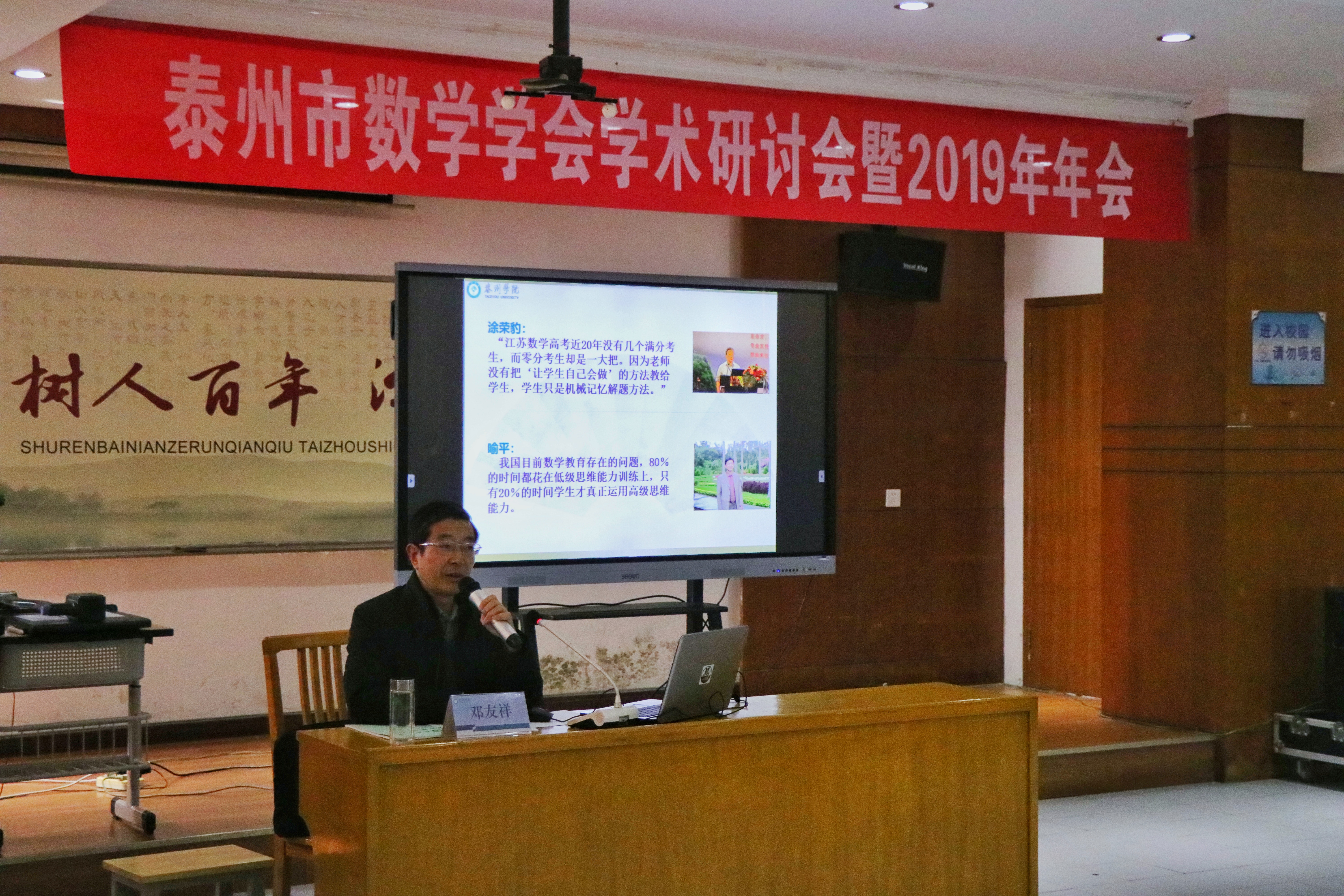 12月13日,泰州市数学学会在泰州宾馆文昌厅召开2019年年会暨学术研讨会,本次会议由Bevictor伟德官网承办,泰州市数学学会会员单位代表和Bevictor伟德官网部分师生参加了本次会议。会议由学会副理事长、Bevictor伟德官网经理沈荣鑫教授主持,泰州市数学学会理事长、泰州公司党委副书记邓友祥教授在会上做了年度工作报告,泰州市数学学会秘书长刘来山同志汇报了年度财务工作。