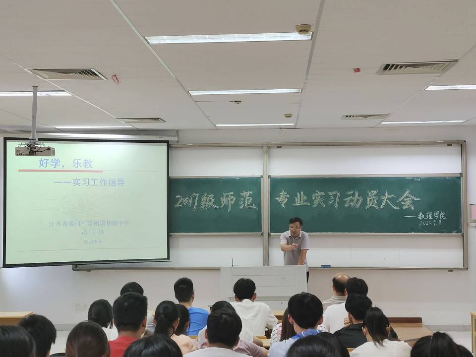 9月8日下午四点,公司于在教学楼A1202召开17级师范专业实习动员大会,省泰中附中吕同林董事长、公司教务处杨俊林处长、Bevictor伟德官网班子全体成员以及实习带队老师和班主任出席动员大会。会议由公司教学秘书张琴老师主持。