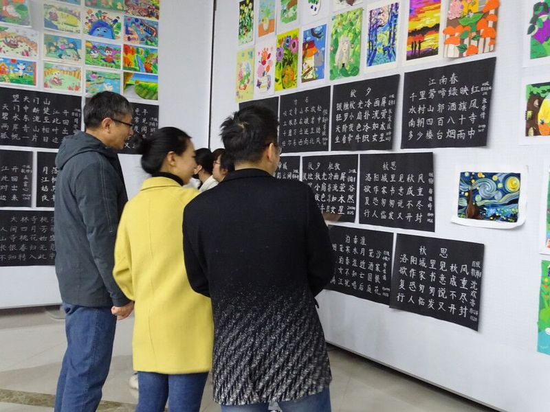 展览现场陈列了员工们的优秀作业、书法作品以及画作等,同学们在班主任的带领下,安静有序的欣赏展品,仔细观摩学习,从优秀作品中汲取长处来提升自己,弥补不足,为下一步如何完善自我做好规划。