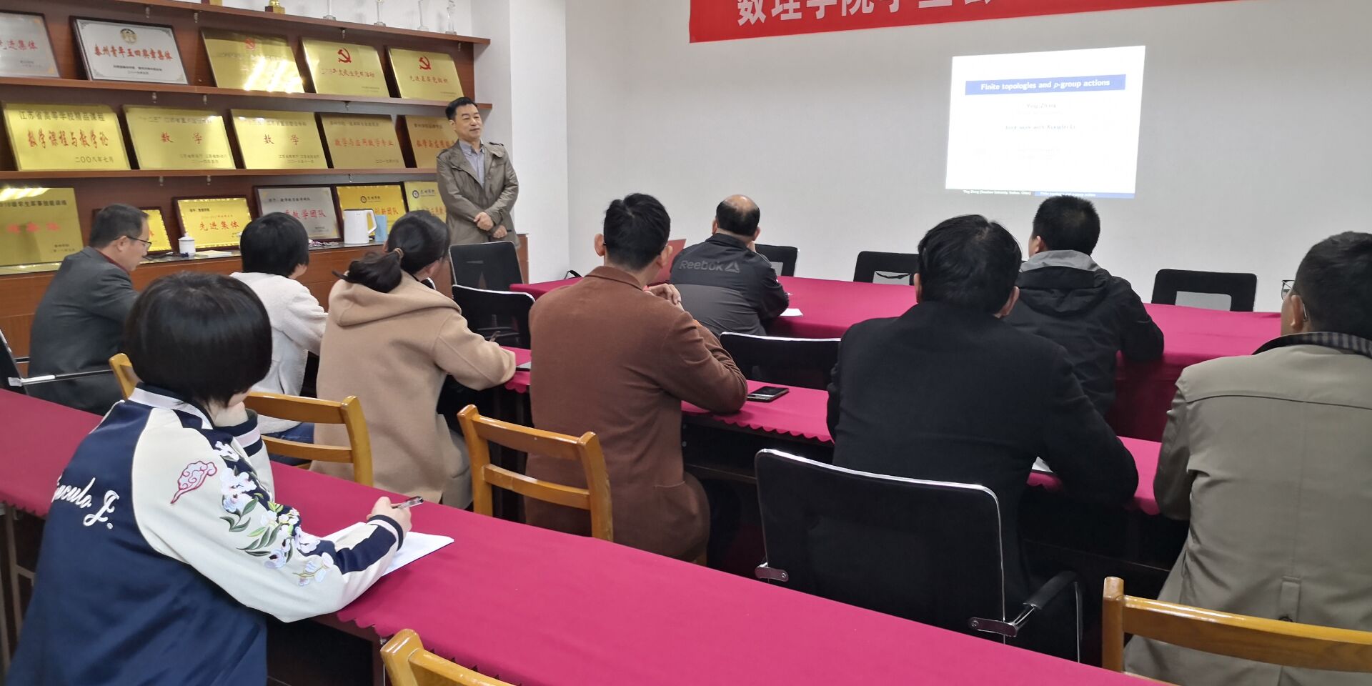 张教授做了题为有限拓扑数与p群作用的精彩报告,报告内容详实,精彩纷呈,给在场的教师带来了很多思考。讲座后大家还与张教授进行了愉快的讨论与交流。