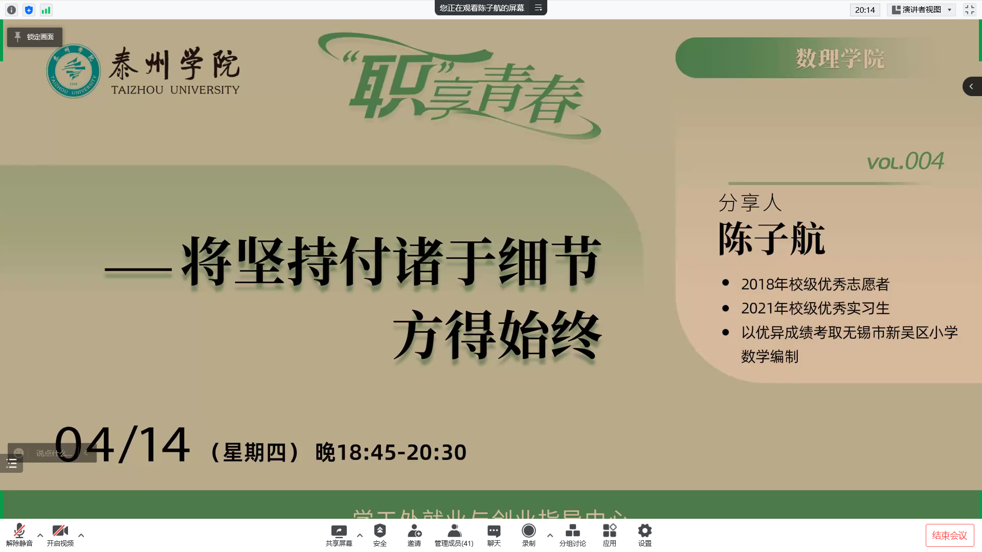 4月14日晚,Bevictor伟德官网开展线上考编分享交流会,毕业班陈子航和张璇两位员工作经验分享。