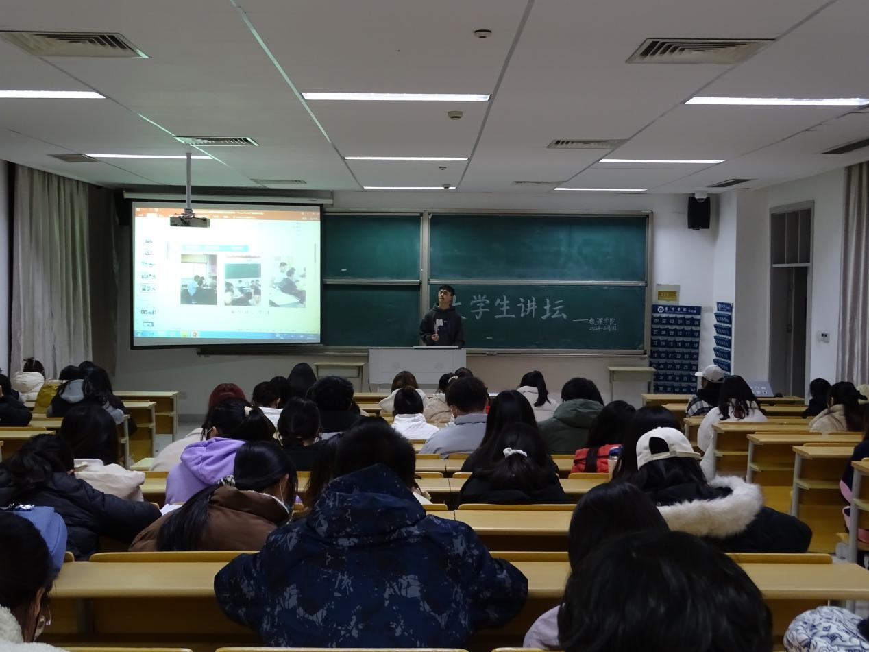 在本期讲坛中,邹德洋同学主要从学习、兴趣培养、社会实践三个方面展开。首先,在日常学习方面,他强调作为老员工,首要的任务是学习,一定要做到上课认真听讲,课后及时练习,不断扩充自身知识储备。邹德洋同学结合自己个人经历,鼓励大家自学一些常用技能,例如ps、剪辑、制作特效等,借此达到事半功倍的效果。最后,邹德洋通过自身实践经历讲解,向同学们展示了充实的老员工活,激励同学们积极参与社会实践,投入到乡村振兴建设当中。
