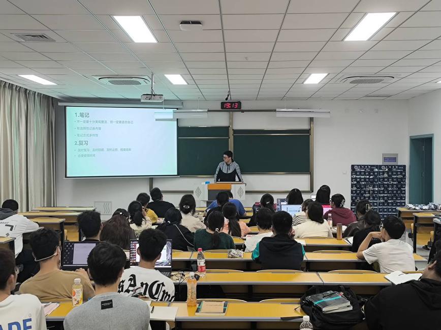 本次宣讲邀请四位学习成绩优异的学长学姐,从学习笔记的记录、课堂重点的复习、学习资源的利用三个方面,为新生分享学习经验。最后,宣讲团成员一一为新生解答在专业课程学习中遇到的困难,以榜样引领激发新生学习热情,启发学习方法,提升专业认知,提高学习效率。