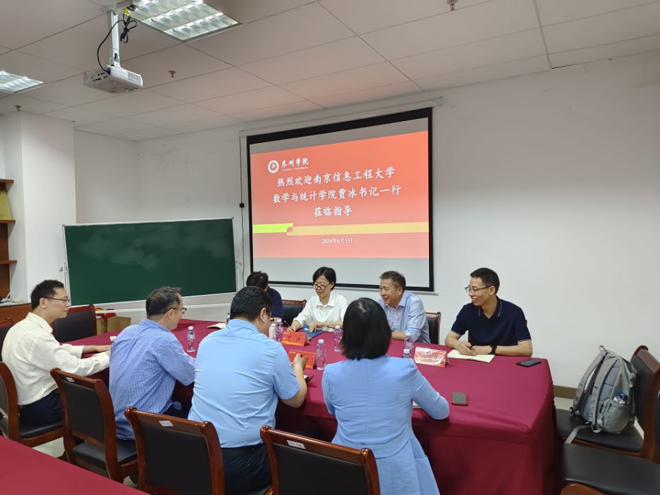 6月5日,南京信息工程大学数学与统计公司党总支书记贾冰、副书记徐锋华、副经理曹春正等一行4人来公司考察交流。公司党总支书记江峰、经理王成敏、党总支副书记赵云和副经理王志华参加了接待和交流。