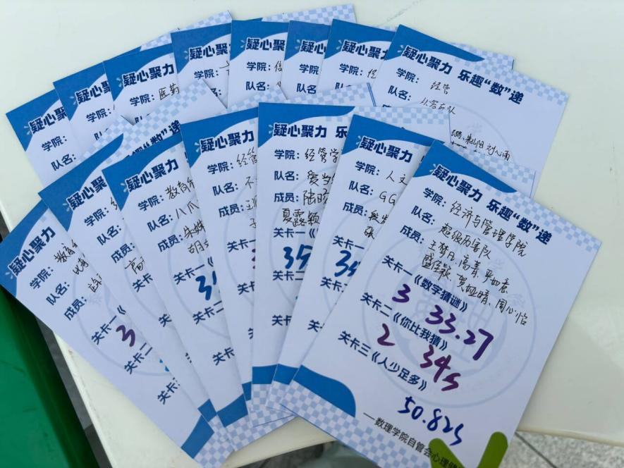 本次活动内容丰富,形式多样。现场设有数字猜谜、你比我猜、人多足少等多种有趣的活动项目,同学们在思考和欢乐中提升数学思维,感受数学学习的乐趣。整场活动从三点持续到五点,分三个批次三个关卡,大家互相鼓励、互相帮助,锻炼了身体协调能力,培养了协作沟通能力,增强了逻辑推理能力。