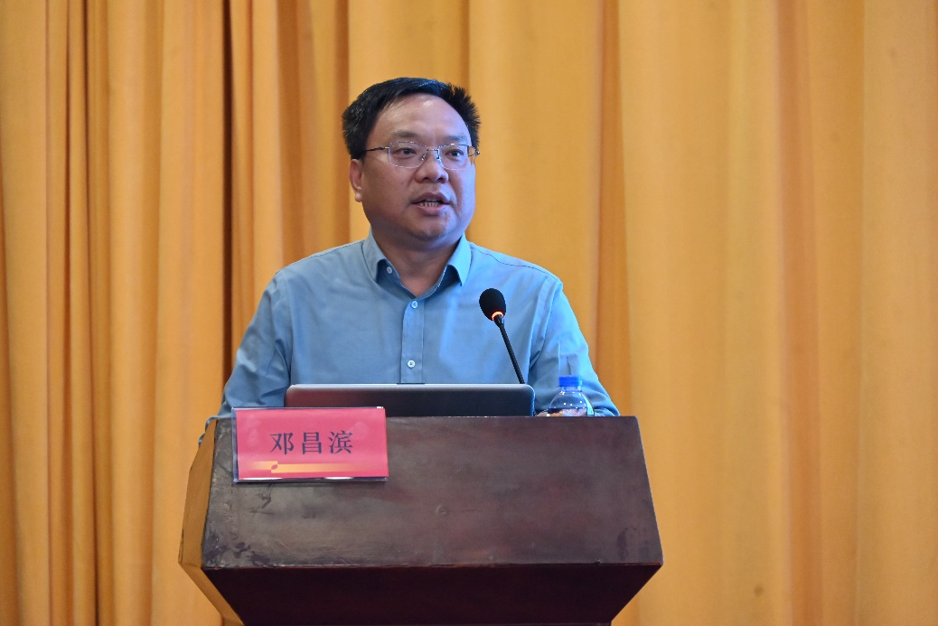 江苏省兴化市教师发展中心研训员、正高级教师邓昌滨作了题为“我的教科研训之路”的专题报告。邓昌滨从通过解题提升解题水平,通过课堂教学提高课堂效率,通过命题研究靶向定位中考等多个方面分享了个人成长发展经历和提高教学质量的方法。