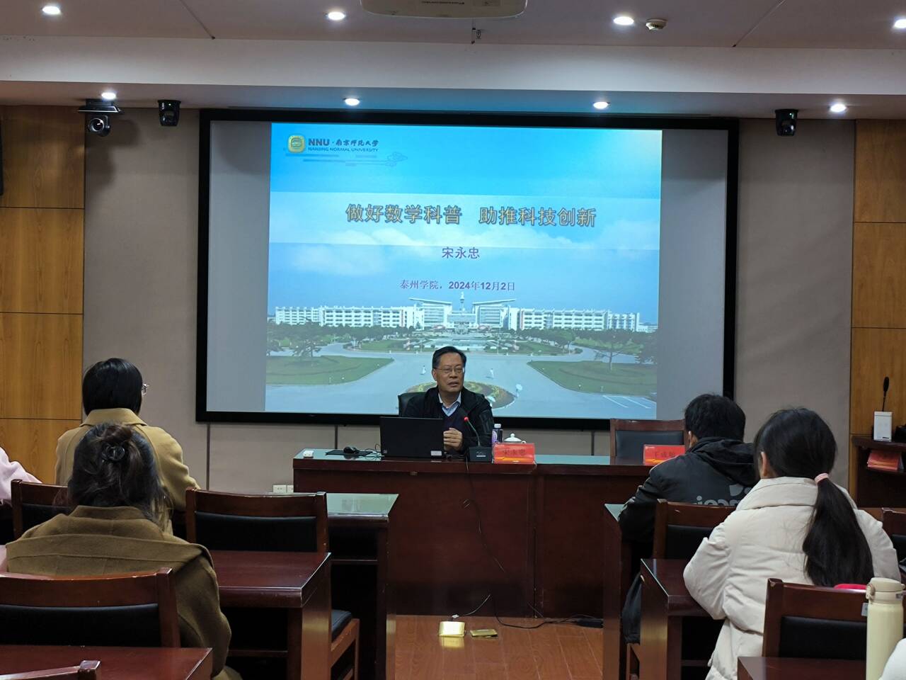 为深入推进数学科普工作,提升师生对科技创新的理解与参与,公司于12月2日邀请南京师范大学宋永忠教授,开展主题为“做好数学科普,助力科技创新”的讲座。报告由经理王成敏主持,22级数学与应用数学专业的同学及部分教师参与了此次讲座。
