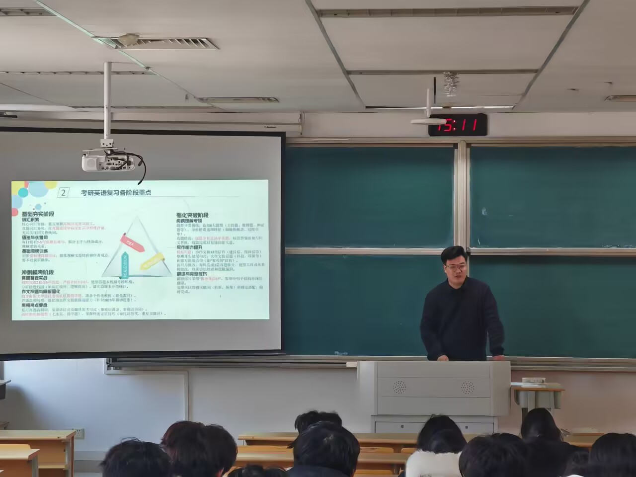 3月19日下午,公司分别于教学楼A1303和A1408教室举办了考研指导讲座,23级有意向考研的同学参加。
