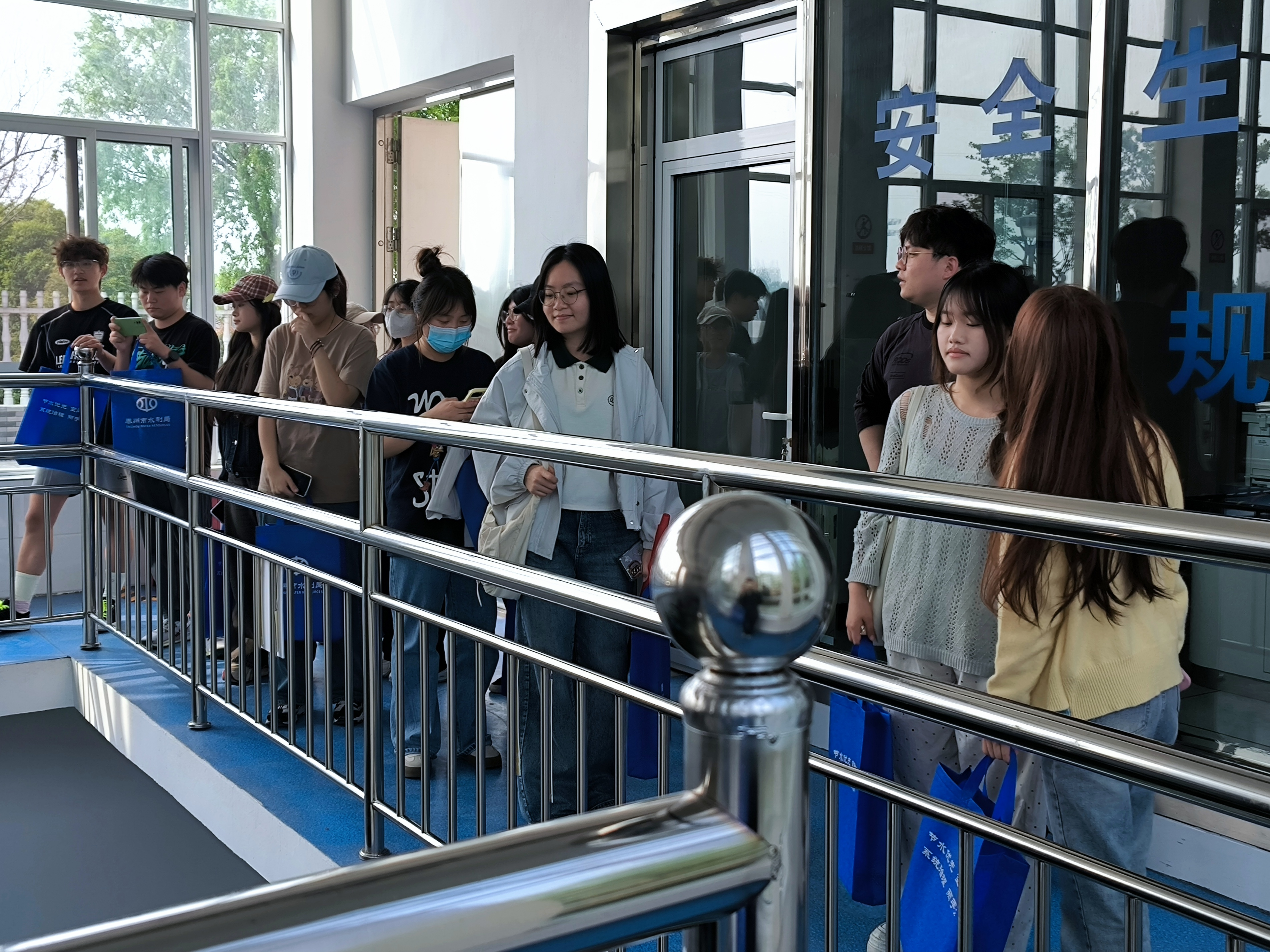 活动当天,水利局工作人员凭借专业的知识和丰富的实践经验,为同学们深入浅出地讲解了泰州市的供水渠道布局以及备用水库的库容等关键信息。随后,工作人员带领同学们实地探访备用水泵,详细介绍了备用水泵的运行机制与工作原理。同时,他们着重强调了备用水泵在应对突发供水状况、保障城市供水稳定中的“定海神针”般的重要作用。同学们认真聆听,不时提出问题,与工作人员积极互动。