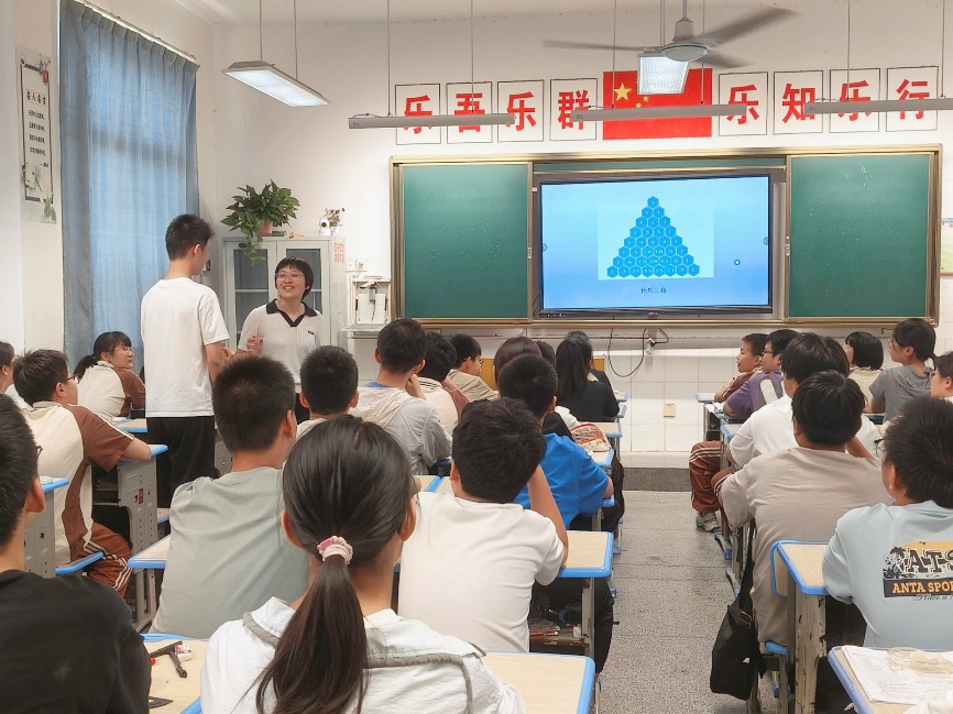 交流会后,赵燕和王能群分别走进课堂,为员工开展了一场关于数学史和数学文化的专题讲座。赵燕从杨辉三角形的历史谈起,通过数学故事介绍了一一对应、容斥原理以及一笔画问题等内容;王能群介绍了无理数的发现及第一次数学危机,回顾了勾股定理的发展历程,并简要介绍了费马大定理与哥德巴赫猜想。在课堂上,同学们积极参与并踊跃发言。通过对数学文化的深入渗透,增强同学们学习数学的兴趣,激发他们对数学的热爱,并提升他们对相关问题的认识。